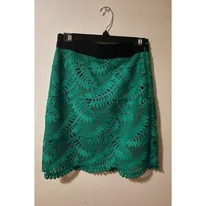 Lace Tropical-Leaf Miniskirt Milly's lace-embellished miniskirt (a little fraying near waistband see pic) boasts tropical leaf patterning and a contrast banded waist.