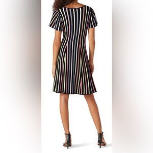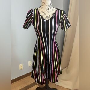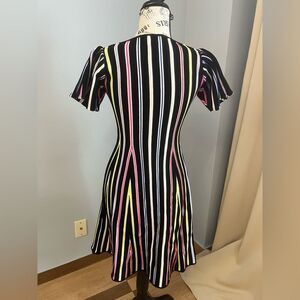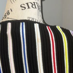 Black and multi-colored striped knit (82% Viscose, 18% Polyester).