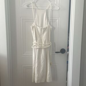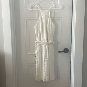 Beautiful preowned classic from Milly. It’s in great condition, textured knit fabric, fully lined, has side pockets, a zippered back, and a detachable tie waist.