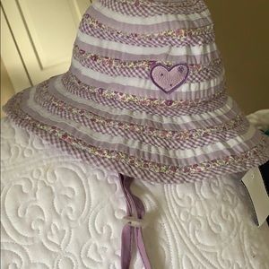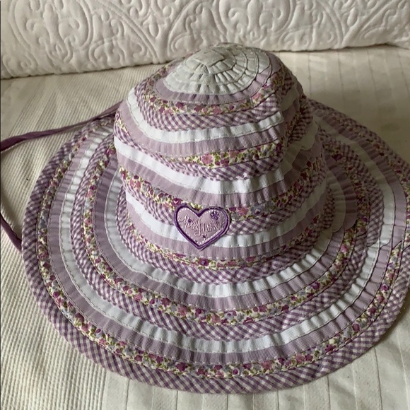 Adorable barely worn milky moon sun hat with draw string chin size 5years + 55 cm 50%cotton 50%polyester