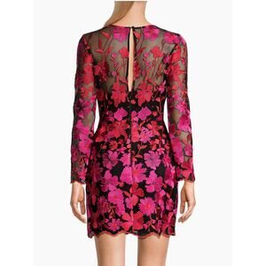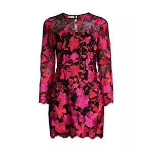 Bright embroidered flowers cover Milly’s Scottie Mini Dress, designed with a fitted long-sleeve silhouette and layered mesh construction.