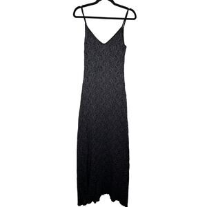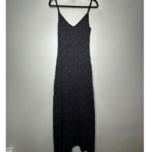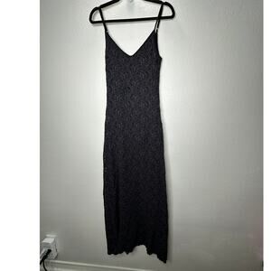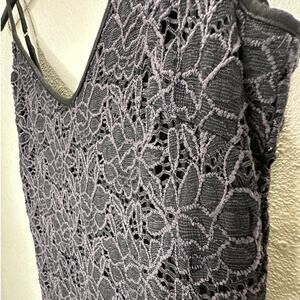 Milo Black & Deep Purple Lace Floral Crochet VNeck Strappy Maxi Dress P
