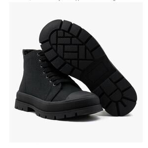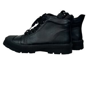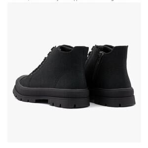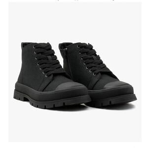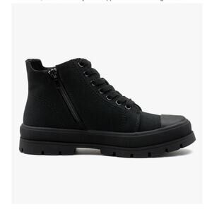 Unleash your edge with these Milocaca Lace Up High Top Platform Sneaker Boots in all black, Size 11 NWOT. Never worn, no tags or box. Built with chunky lug soles, a full lace-up front, and an easy side zipper for that utility-meets-street vibe. The faux leather and canvas blend keeps them lightweight yet bold, while the 4” shaft and 5.5” total height add instant attitude. A perfect mix of military, punk, goth, and retro energy, these boots bring serious presence to any fit. Pair with distressed denim, cargos, or oversized layers for a raw, underground look that doesn’t try too hard—it just is.