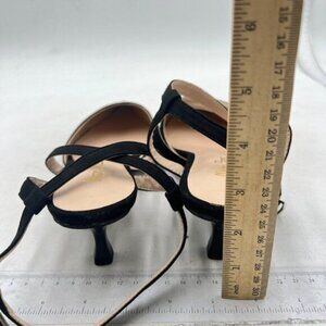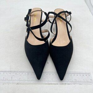 Milooey Black Pointed Toe Kitten Heel Sandals Elegant Cross Ankle Strap Shoes