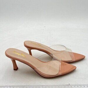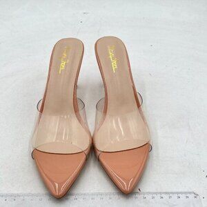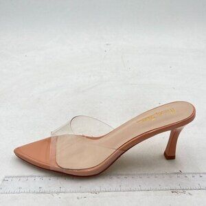 Milooey Nude Comfy Kitten Heel Mules Open Pointed Toe Slide Sandals Shoes