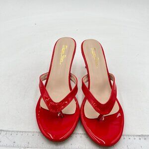 Milooey Red Womens Flip Flop Sandals Slip on High Heel Mules Round Toe Slippers
