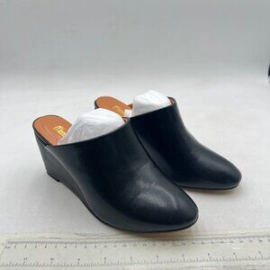 Milooey Shoe Black Cute Round Toe Mules Wedge Heels Slippers Slip On Sandals