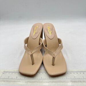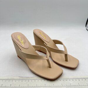 Milooey shoes Beige Round Toe Flip Flops Wedge High Heels Slip On Thong Sandals