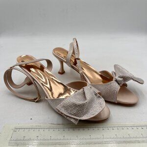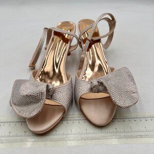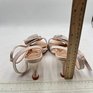 Milooey shoes Gold Glitter Rhinestone Bow Crystal Ankle Strap High Heels Sandal