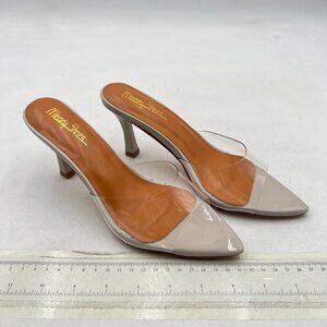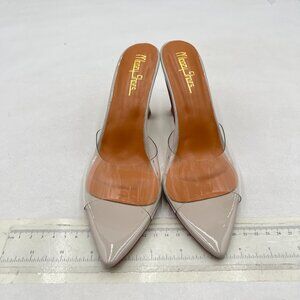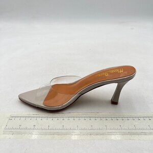Milooey shoes Grey High Heel Mules Open Pointed Toe Slide Sandals Cute Slippers