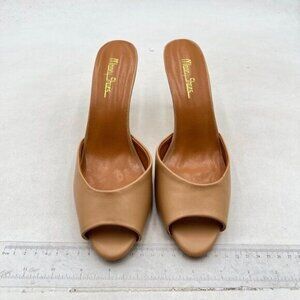 Milooey shoes Open Peep Toe Mules for Women Stiletto High Heels Brown