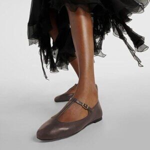 Milooey shoes Round Toe Flat Mary Janes , Chunky Low Heels T-Strap Buckled Brown