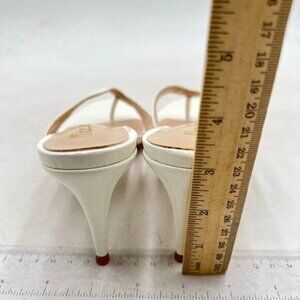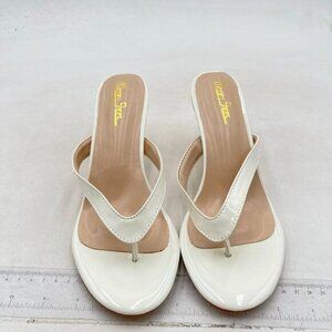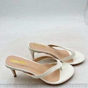 Milooey shoes Womens Flip Flop Sandals Slip on Kitten Heel Mules Round Toe White