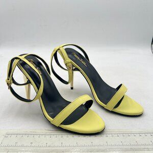Milooey shoes Yellow Strappy Sandals Sexy Open Toe Stiletto High Heels Cross Ankle Strap Party Dress Summer Shoes