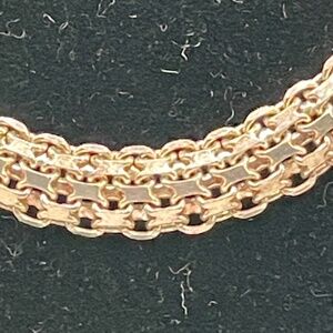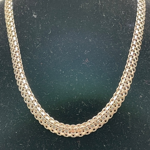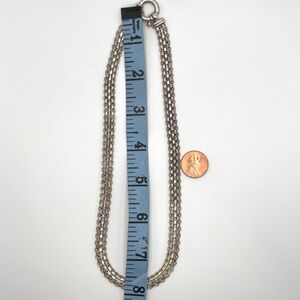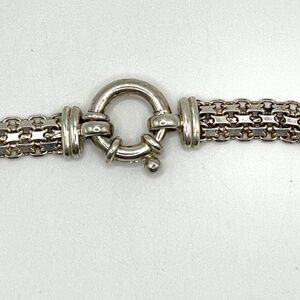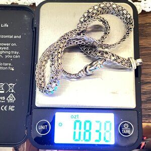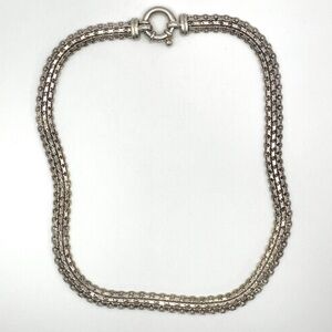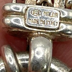 Milor 925 Italy signed sterling silver Bismarck chain necklace unisex. I have not cleaned this. This style of chain sparkles on a large spring ring style closure. Clasp is clearly marked 925 Milor Made in Italy. Measures about 3/8" wide and 16 1/2" end to end. Pre-owned in good condition. See photo for weight in Troy Ounces