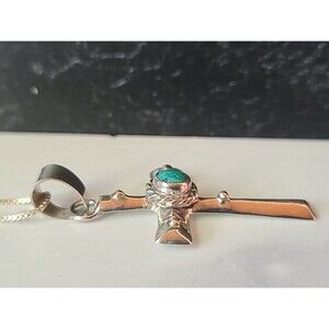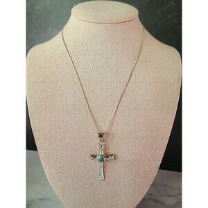 Milor 925 Sterling Silver Turquoise Cross Pendant Necklace Vintage, READ