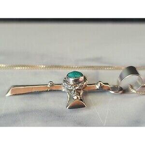 This is a vintage Milor 925 sterling silver turquoise cross pendant necklace.