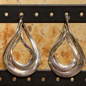The product is a pair of Milor 950 Silver Twisted Hoop Style Earrings made in Italy. These asymmetrical earrings feature a hinged closure and are crafted from 950 fine silver with a silver color finish. Signed by the brand Milor, they are perfect for various occasions such as engagements, weddings, anniversaries, birthdays, and special holidays like Christmas and Valentine's Day. The earrings have a vintage style and are a beautiful representation of beauty and art, making them a meaningful gift for any occasion. Marked Milor, 950 and Italy.