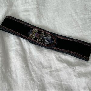 Milor Black Belt With Red Gold Silver Beaded Fleur De Lis Design Trim