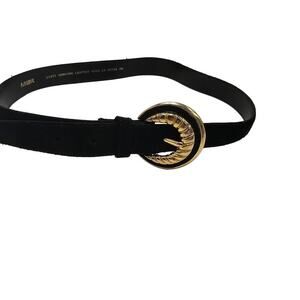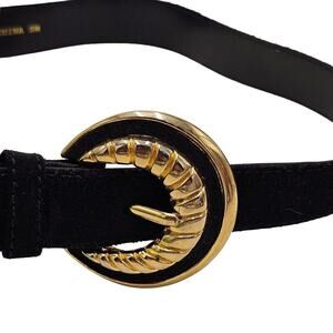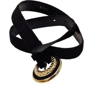 Milor Black Leather Belt Womens Small 80's Vintage Round Buckle Gold Statement