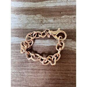 This bronze bracelet features charming heart-shaped links that exude a romantic flair. Crafted for durability, its lobster clasp ensures secure wear. A timeless piece blending classic charm with modern appeal, it makes a versatile addition to any jewelry collection. The warm bronze tone complements various outfits and occasions.