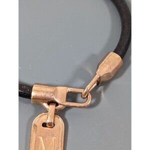 Milor Bronze Italy Initial Letter M Charm Bracelet Brown Leather 7.5"