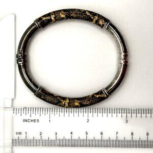 Milor Italy 925 Sterling Silver Enamel Hinged Bangle Bracelet Animal Print 6.75