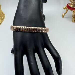 This bangle style bracelet is signed by the Milor brand and is made of stainless steel with a beautiful brown rose gold color.