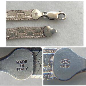 Milor Italian Sterling Silver 925 Heavy Greek Key Patterned & Smooth Reversible Herringbone Chain 43g