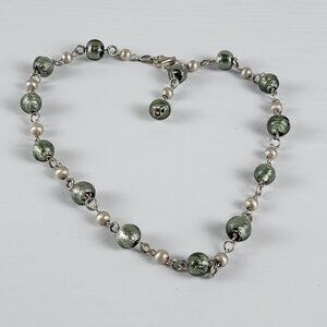 Milor Sterling Silver Roman Glass And Pearl Necklace 18" Italy 925 Lobster Clasp