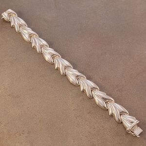 Lovely women's Milor Italy sterling silver chunky 3d leaf link bracelet with a secure tab clasp. The piece is hollow!!!