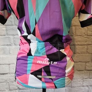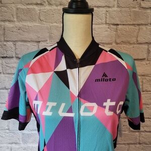 Miloto women's multi colored front zipper short sleeve cycling jersey size L