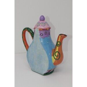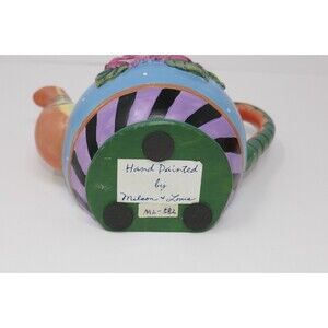 This Milson & Louis teapot features a beautiful hand-painted floral design. The teapot is a unique and original piece that would make for a great addition to any collection. With its multi-color scheme, it is sure to add a pop of color to any room. Its age is unknown, but it remains in excellent condition. Measures approx. 6.75 in tall, 6.5 in wide and 2.5 in deep. See photos for item condition, this is a picture of the actual item.