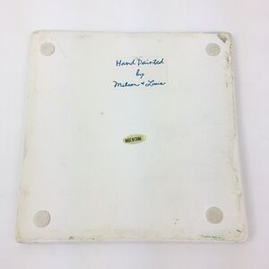 Measures about: teapot: 7" x 7.5", coaster/tile: 6" x 6".