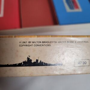 Vintage 1967 Milton Bradley 1st Edition Battleship Game. Game is complete with box and all pieces. Box does have condition issues like 2 corners are torn and there is discoloration. Game pieces are is great condition. This 1st edition box cover was changed in 1971 so as not to be so sexist.