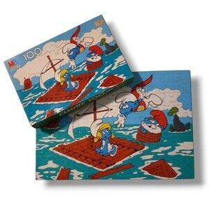 Milton Bradley Smurf Jigsaw Puzzle-Vintage-41906-100 Pieces-Smurfette-Complete