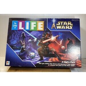 The product is a board game called Milton Bradley The Game of Life - Star Wars: A Jedi's Path, released in 2002. It combines the classic Game of Life gameplay with a Star Wars theme, allowing players to explore the path of a Jedi in a war-filled universe. The game board provides the backdrop for strategic gameplay and storytelling, immersing players in the Star Wars universe and challenging them to make important decisions that impact the outcome of the game. It is a unique and exciting addition to the board game genre, perfect for fans of both Star Wars and strategy games.