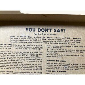 Get ready to laugh and guess with this classic 1963 Milton Bradley game "You Don't Say!" Perfect for game nights with friends and family.