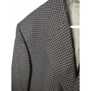 Men's Milton 100 wool jacket blazer with inner and outer pockets three button close in good condition. Flap front pockets fully lined. Brown black gingham pattern. 4 button on wrist sleeves. * Does have small flaw on inner pockets shown in pics.*