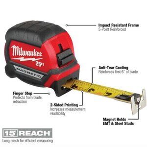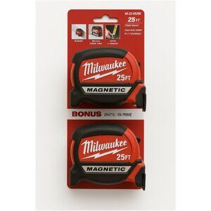 Milwaukee 25 ft Compact Magnetic Tape Measure 15 ft. Reach 2-Pack