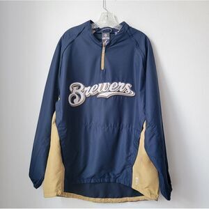 MILWAUKEE MAJESTIC BREWERS Windbreaker Detachable Jacket/ Pullover 1/4 Zip MLB Authentic