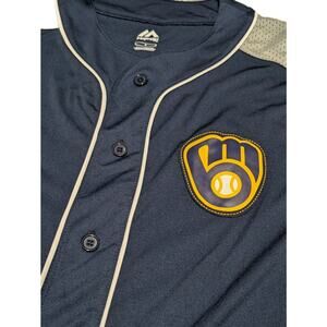 Milwaukee Brewers Jersey MLB Majestic Size Medium L Blue Gray White Official . Condition is Pre-owned. Shipped with USPS Ground Advantage.