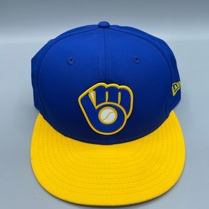 Milwaukee Brewers MLB New Era Hat 7 1/8 NEW Blue Yellow