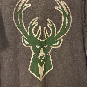Milwaukee Bucks long sleeve top. Retro brand. Soft, slightly thicker material. 50% Cotton, 50% Polyester. Intentional ragged bottom hem line. Great condition. Approximate measurements: length 26 inches, pit to pit 19 inches, pit to cuff 20 inches.