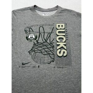 Milwaukee Bucks Nike Tee Shirt Dri-Fit NBA Basketball Hoop Logo Gray Size Medium