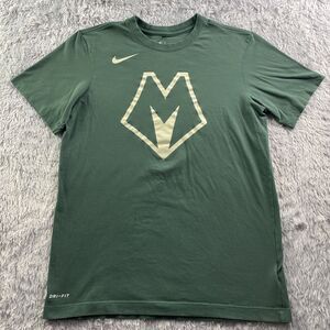 Milwaukee Bucks Shirt Mens Small Green Cream Nike Dri-Fit Swoosh Short Sleeve