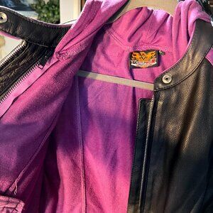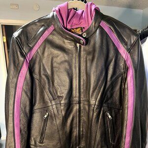 Milwaukee Leather Women's Striped Black Leather Jacket w Zip Out Lining SZ Lrg