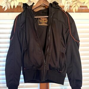 This item is a Milwaukee Performance MPL2764 Women's Soft Shell Armored Motorcycle Jacket with a hoodie.