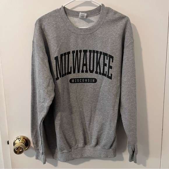 Milwaukee Wisconsin Gray Pullover Crewneck Sweatshirt Unisex Medium Gildan