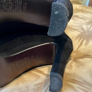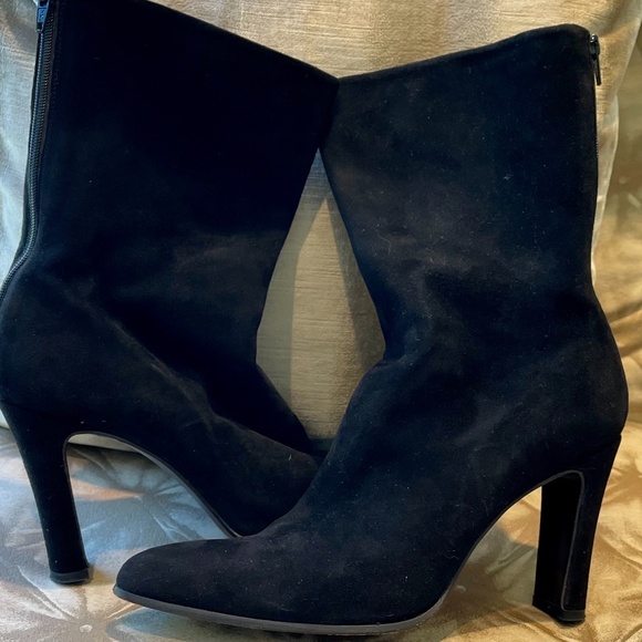 Mima Venezia black suede short boots. Back zippers. Made in Italy. Size 38.5. Heel height approximately 3.75”. Made in Italy. Good used condition. Thanks for looking.